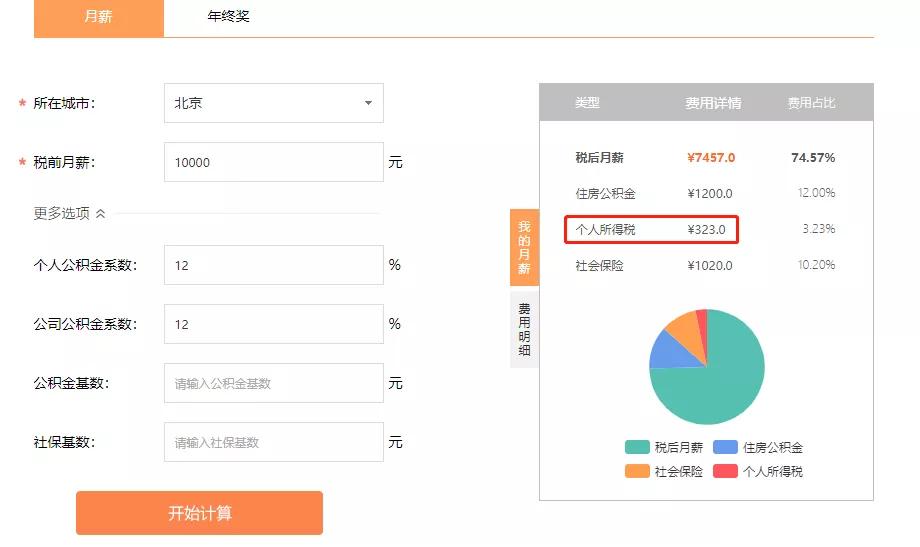 按照月薪10000元,繳納比例12%來計算,也就是每月個人存繳1200元,企業(yè)為員工再存繳1200元,公積金賬戶內為2400元,員工的稅后收入為7457,加上2400元的公積金,總計為9857。