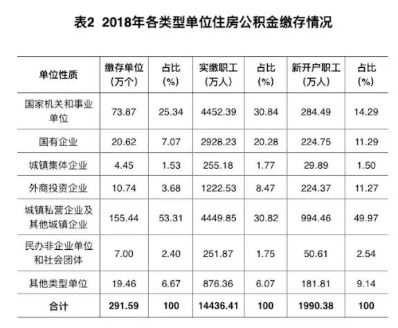 據(jù)《全國住房公積金2018年年度報告》(以下簡稱《報告》)顯示,2018年,住房公積金實繳單位291.59萬個,實繳職工14436.41萬人,分別比上年增長11.15%和5.09%。